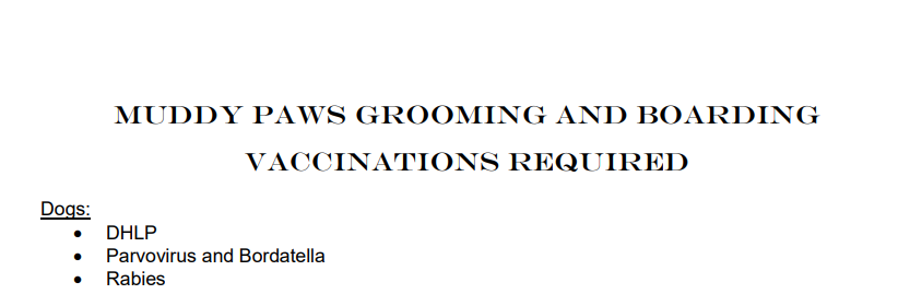 - Muddy Paws Boarding and Grooming Vaccinations Required.Download